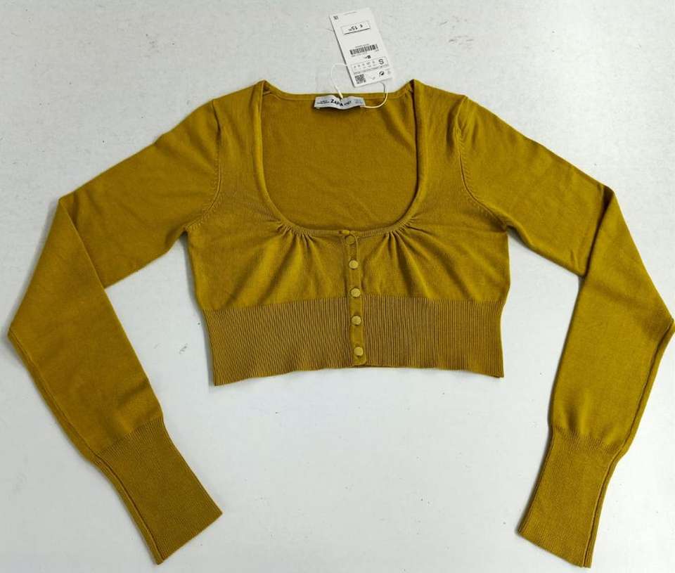 Lot de pulls décontractés à manches longues et col carré pour femmes, avec étiquettes de marque originales, style cardigan court sexy, stock du Bangladesh
