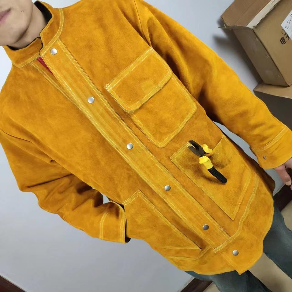 Veste de soudeur en cuir de vachette fendu couleur marron originale haute anti-chaleur lutte contre l'incendie pour le soudage vêtements de sécurité vêtements en cuir