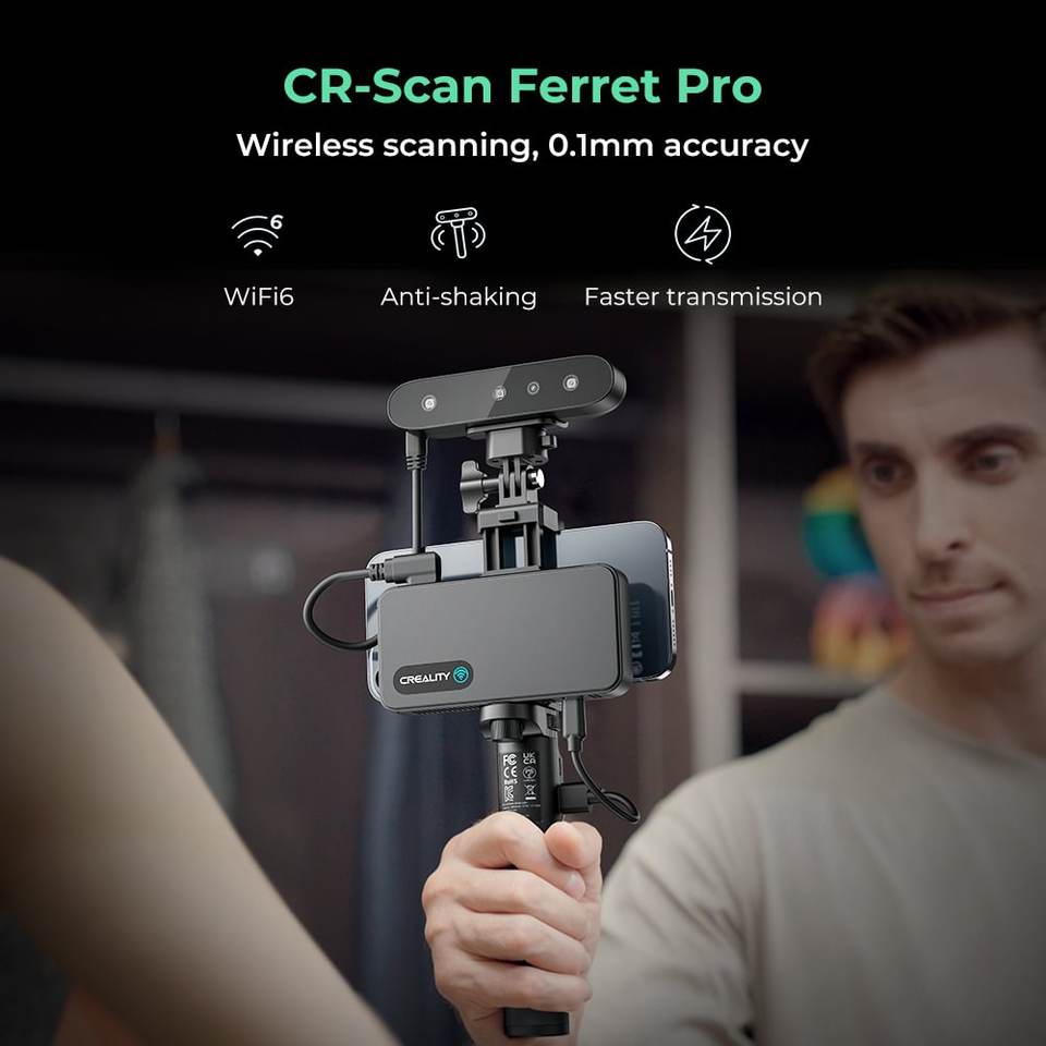 Scanner 3D CR-Scan Ferret Pro, précision de 0,1 mm, numérisation couleur, laser à ligne verte, portable, facile à utiliser, garantie 1 an, Creality
