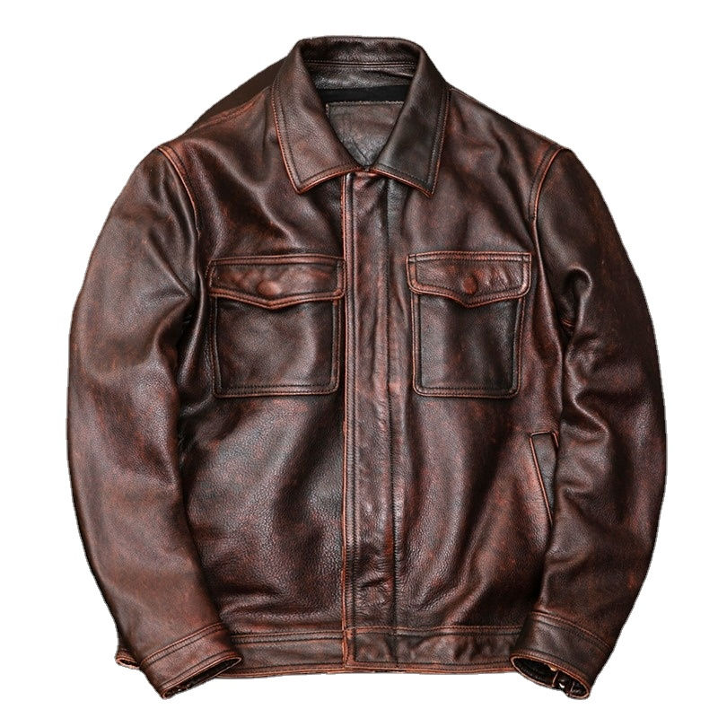 Veste en cuir de vachette originale pour hommes, manteau de moto surdimensionné et mince pour hommes, imperméable et respirant, service OEM accepté