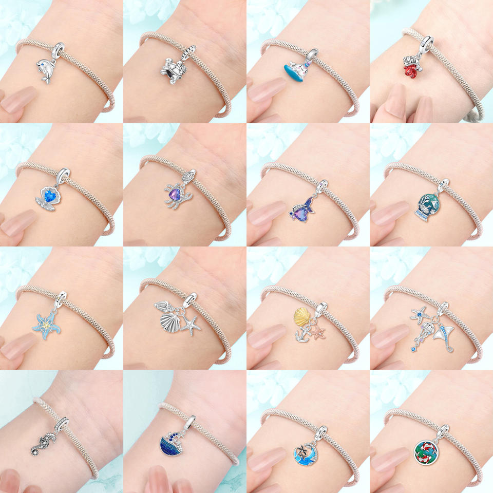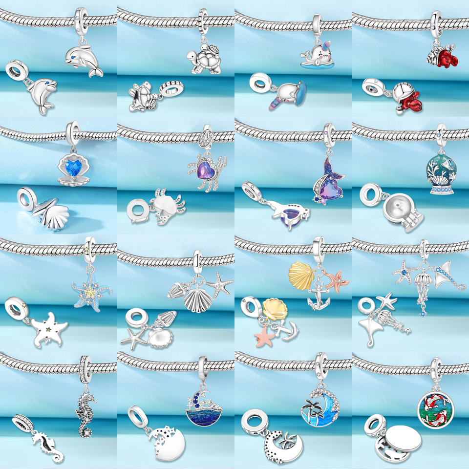 Accessoire de bracelet DIY original avec pendentifs tortue, dauphin, étoile de mer et coquillage, intégrant des éléments marins
