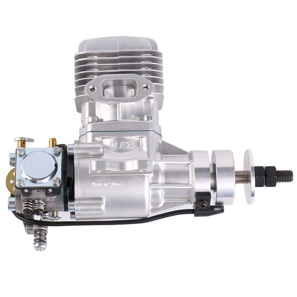 Moteur à essence DLE20 d'origine, 20 cm³, deux temps, monocylindre, échappement latéral, refroidissement par air naturel, démarrage manuel, modèle argenté