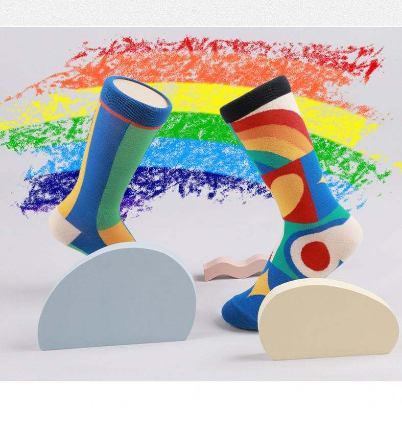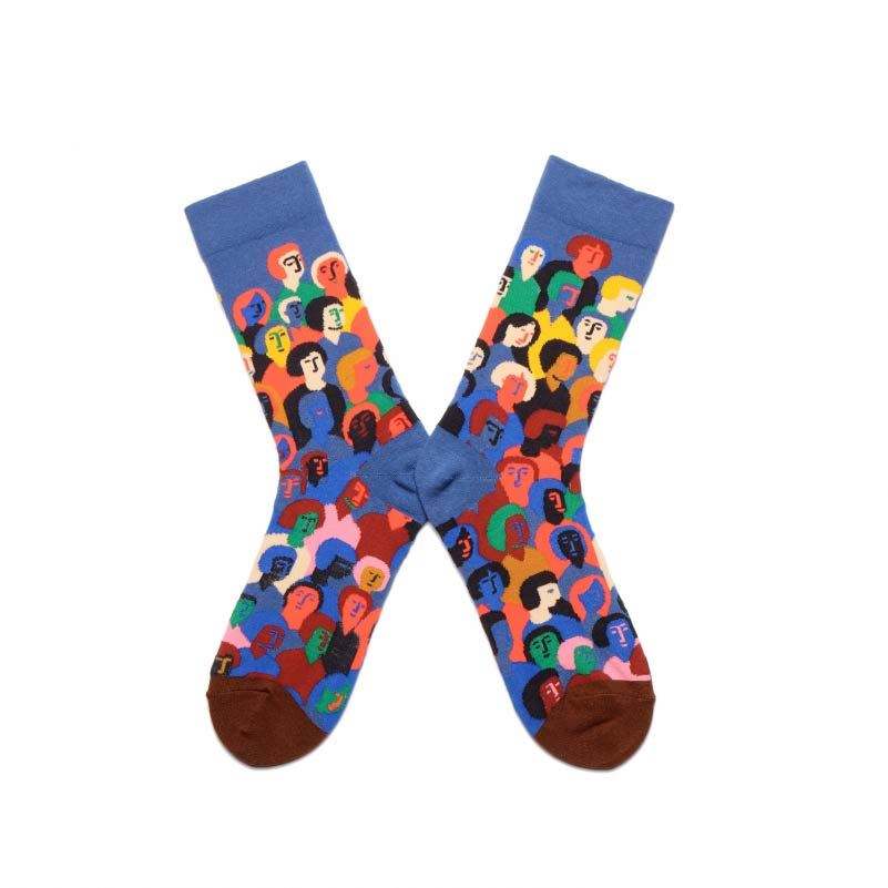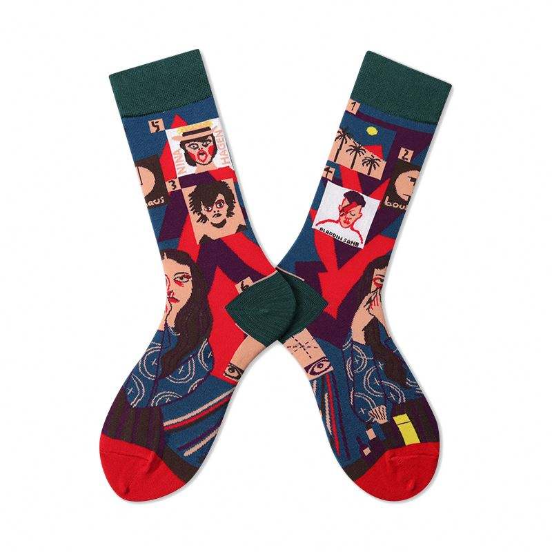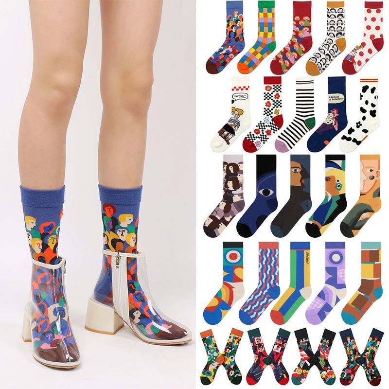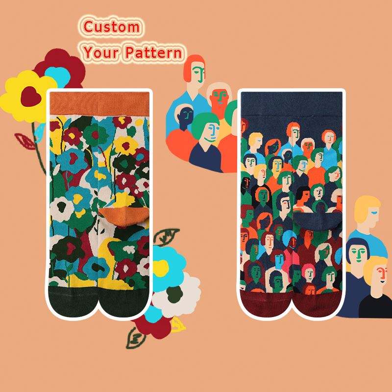 Chaussettes mi-longues personnalisées pour femmes Design original tête française dessin animé pointillé à carreaux coloré personnalisé marque de mode