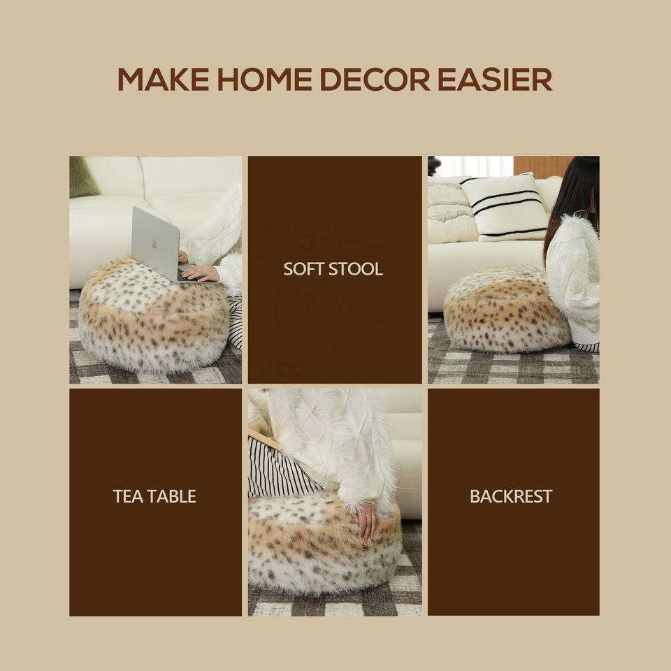 Housse de pouf ronde en imitation fourrure animale, design original, décoration d'intérieur, coussin de sol moelleux, pouf de salon