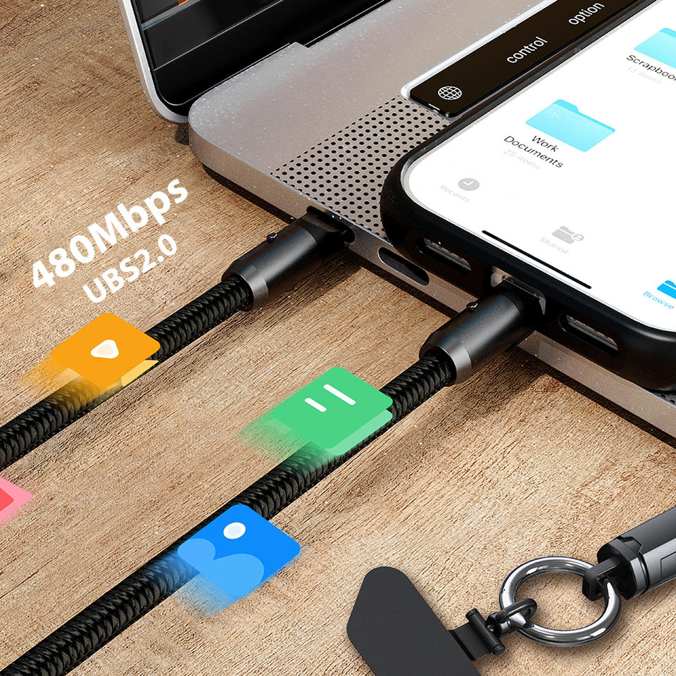 Cordon de chargement multifonctionnel pour téléphone portable, design original, 1,5 m, tressé, durable, anti-chute, câble de données Type C