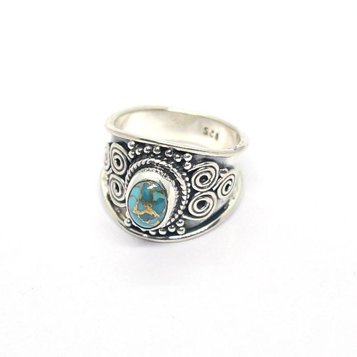 Bague en argent vermeil, design original fait main, cuivre et turquoise, style moderne, rétro bohème, très vendue.