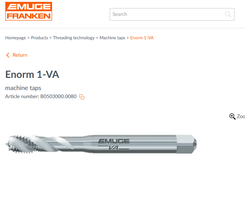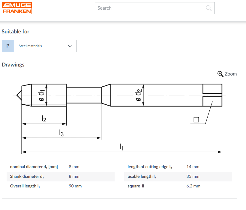 Tarauds allemands EMUGE haute performance pour usinage CNC, taraud métrique M8x1.25, 3 cannelures, modèle diamètre 8 mm