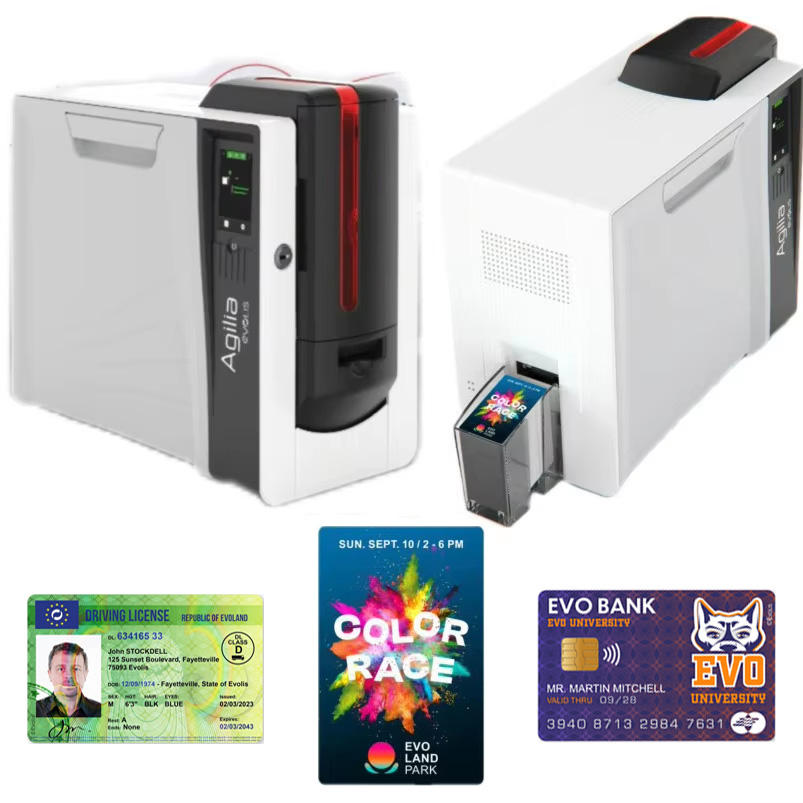 Evolis Agilia-Imprimante thermique originale de transfert de cartes en plastique PVC, machine d'impression de cartes d'identité bord à bord 600 DPI