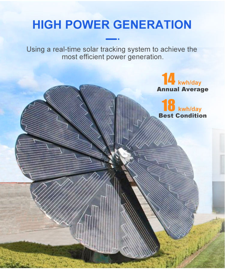 Système intelligent original de panneau solaire de fleur de production d'usine 3Kw avec le paysage de stockage de l'énergie 5KWh dépistant automatiquement la lumière du soleil