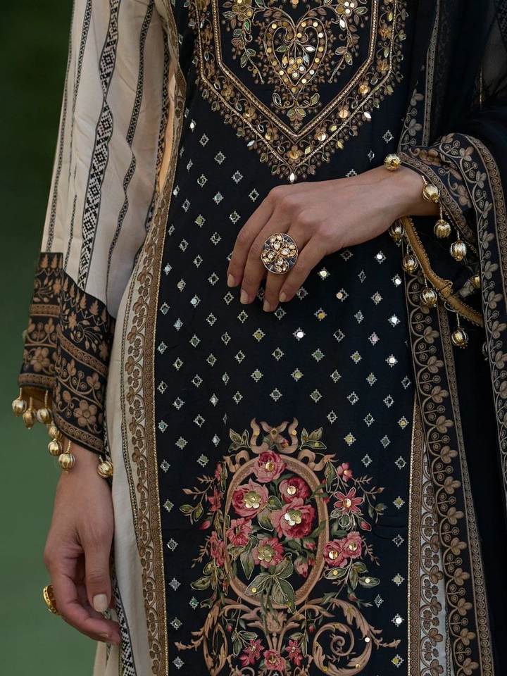 Original miroir à main travail Plazzo Dupatta Seemer imprimé fantaisie broderie traditionnelle nouvelle tendance pakistanaise Salwar Kameez fête