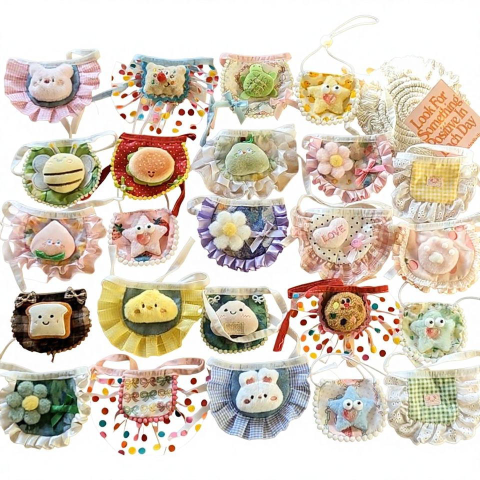 Bavoir pour animaux de compagnie fait main, style coréen, assorti de couleurs, pour chat, chiot, demi-sac, vêtements de poupée, mariage/anniversaire, polyester