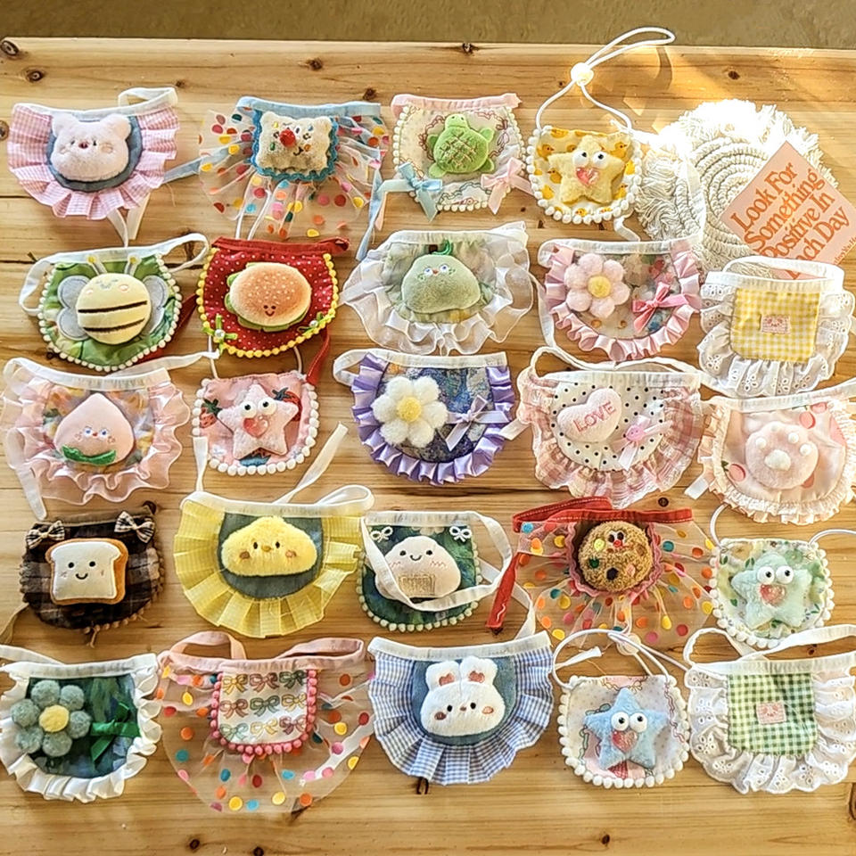 Bavoir pour animaux de compagnie en polyester de style dessin animé fait à la main pour chats et chiots, demi-serviette anti-bave, accessoires pour vêtements de bébé