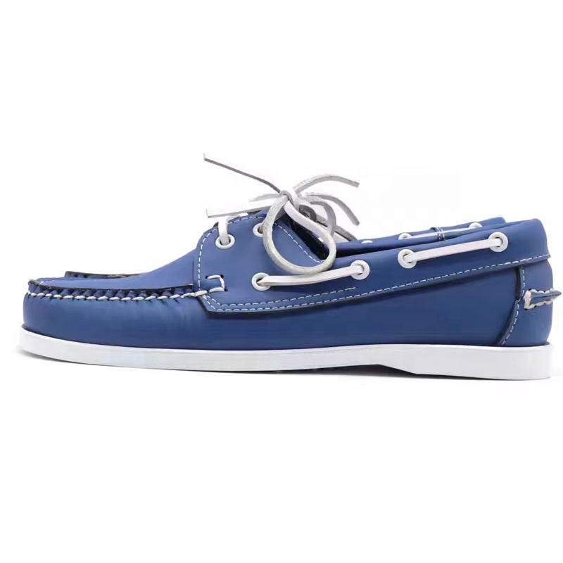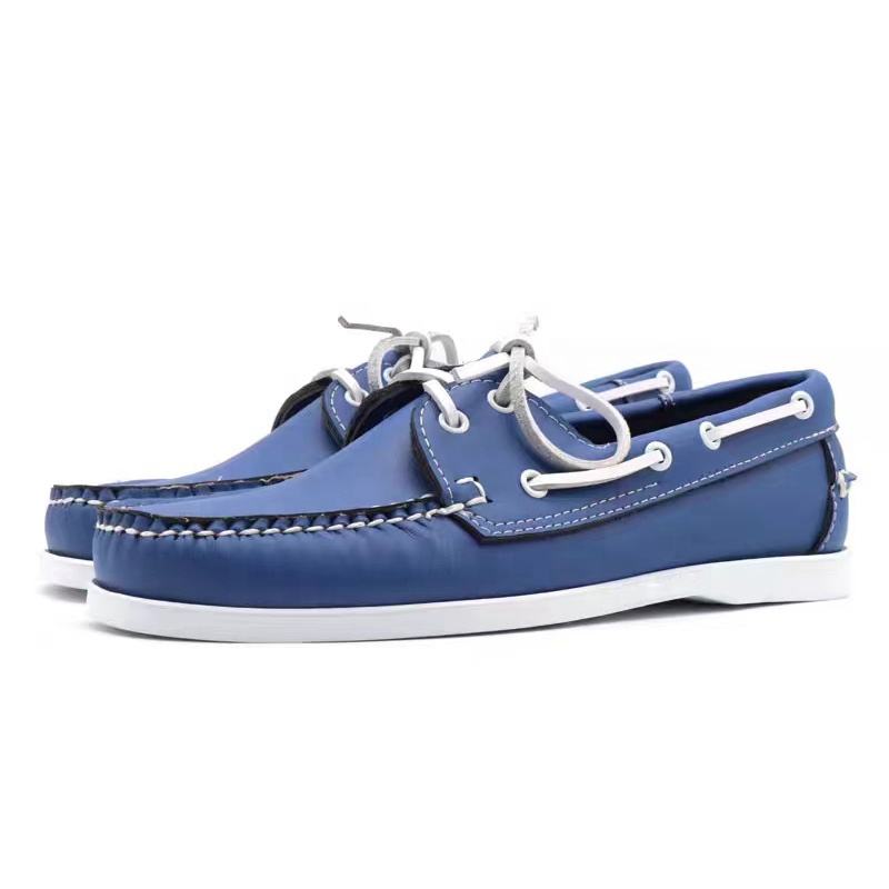 Chaussures originales de haute qualité, authentiques, de la marque Docksides, de couleur bleue - Mocassins en cuir de qualité supérieure à bout rond, à lacets, chaussures bateau pour hommes, style pieds nus