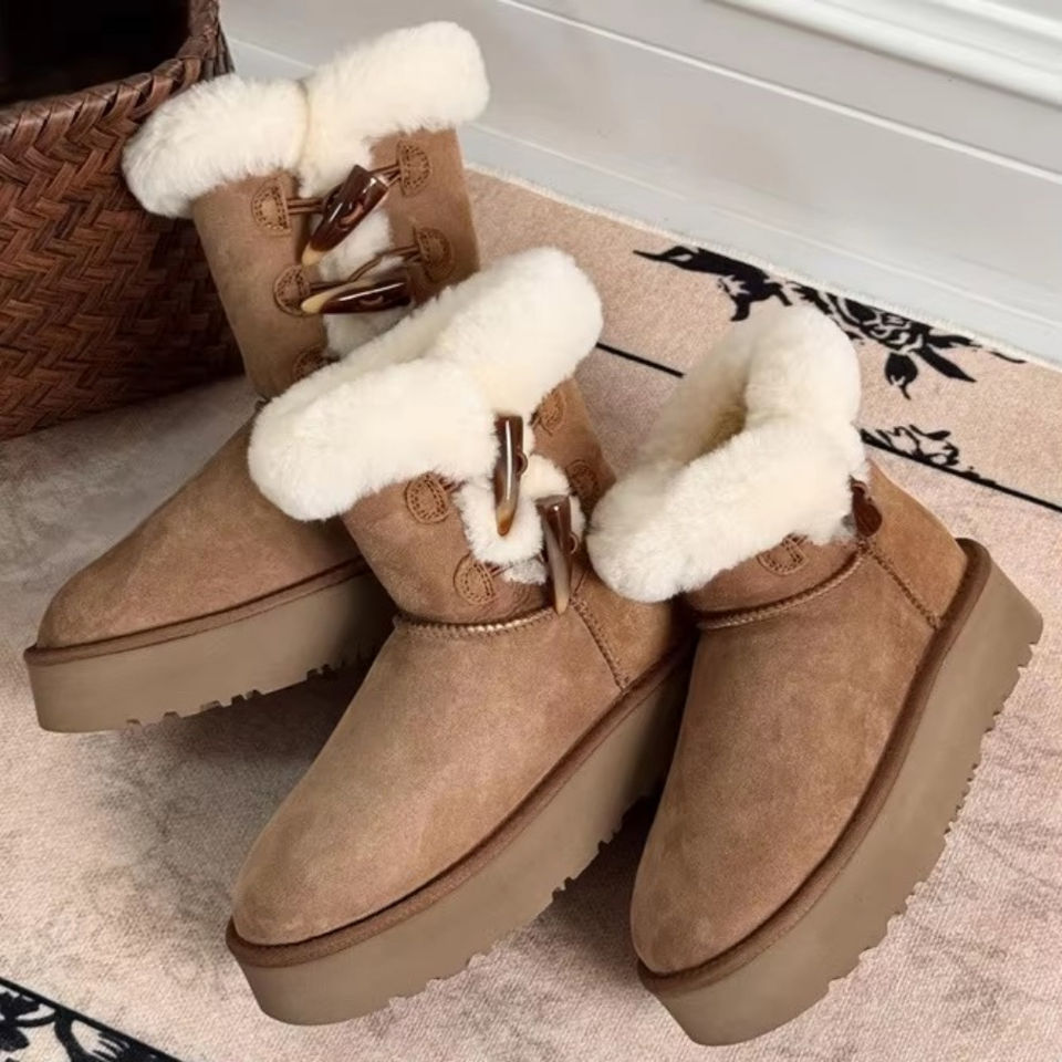 Bottes d'hiver pour femmes, bottes de neige à plateforme antidérapantes de luxe en cuir de mouton de marque Uggs, fabriquées sur mesure, de haute qualité, originales