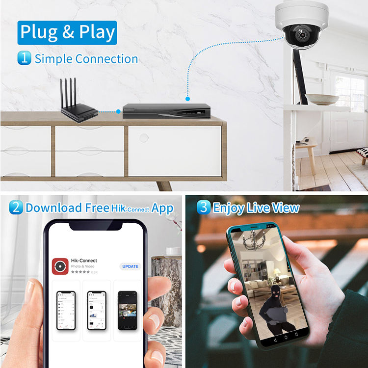 Nom du produit:Kit de système NVR POE Plug & Play Hik 8 canaux avec ensemble de caméras