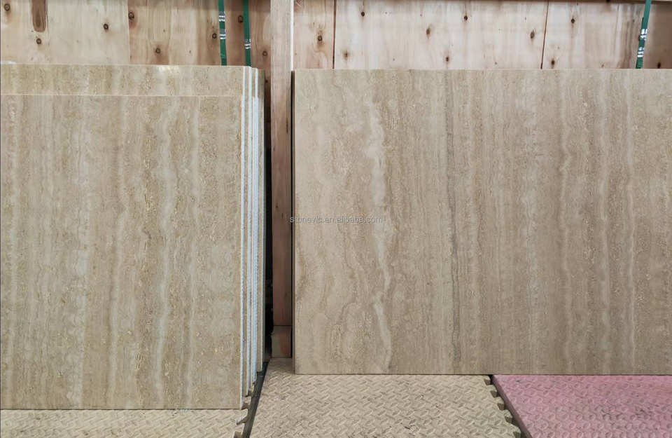 Panneau de pierre composite en travertin italien original Roma Travertine, panneau de pierre design pour la décoration murale.