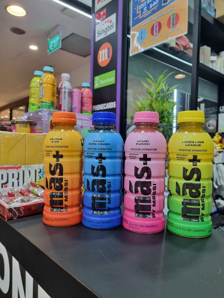 Boisson sportive énergétique à faible teneur en glucides et en carbonate Original Mas+ by Messi Positive Hydration, pack de 4