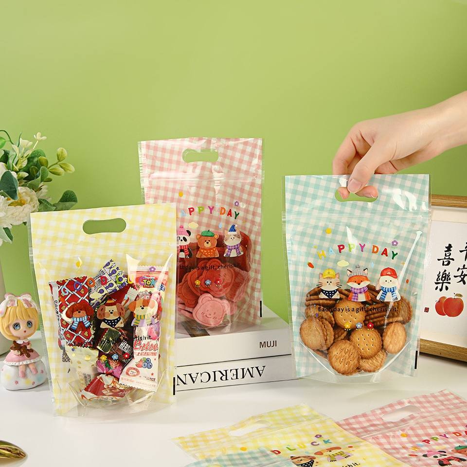 Nouveau sac d'emballage pour biscuits et bonbons à motif de dessin animé, sac à collation auto-scellant, sac autoportant, sac alimentaire refermable à fermeture éclair