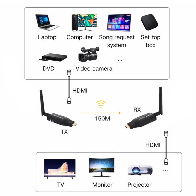 Émetteur et Récepteur HDMI Vidéo Sans Fil 150 m d'Origine OEM pour Étendre l'Affichage du PC ou PS4 vers la Télévision