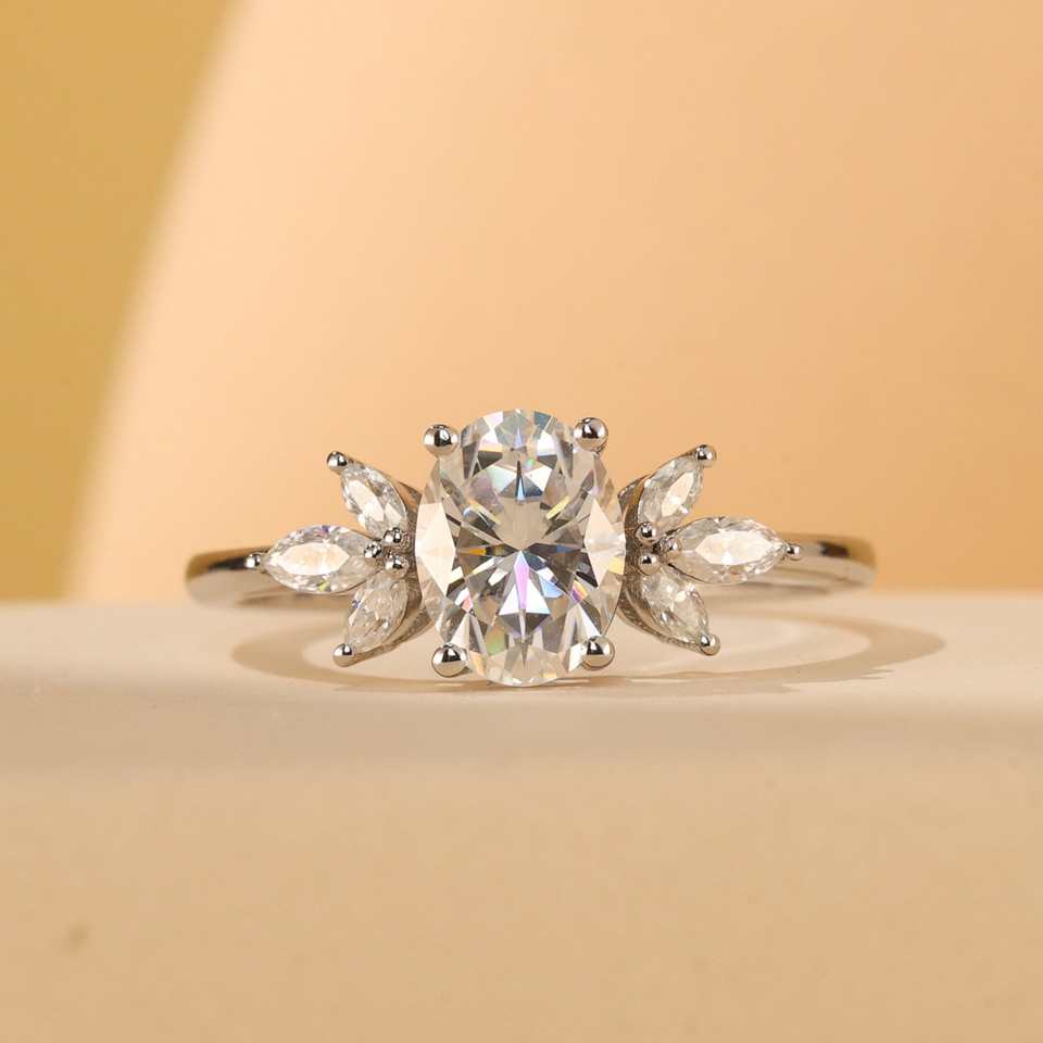 Bague originale ovale en forme de grappe de diamants en argent 925, bijoux classiques Halo, côté marquise, Moissanite, élégante fête, bague fine