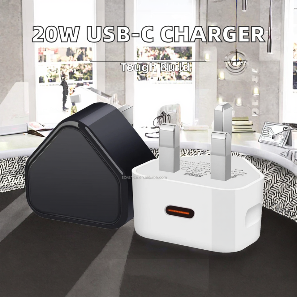 Chargeur mural rapide USB-C PD 20W avec protection OTP et OVP, prise UK pour téléphone