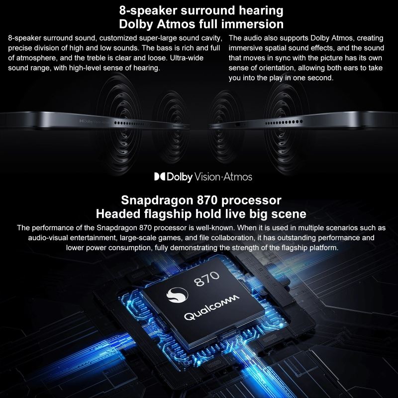 CPU:870 Kryo585 7nm Octa Core jusqu'à 3,2 GHz