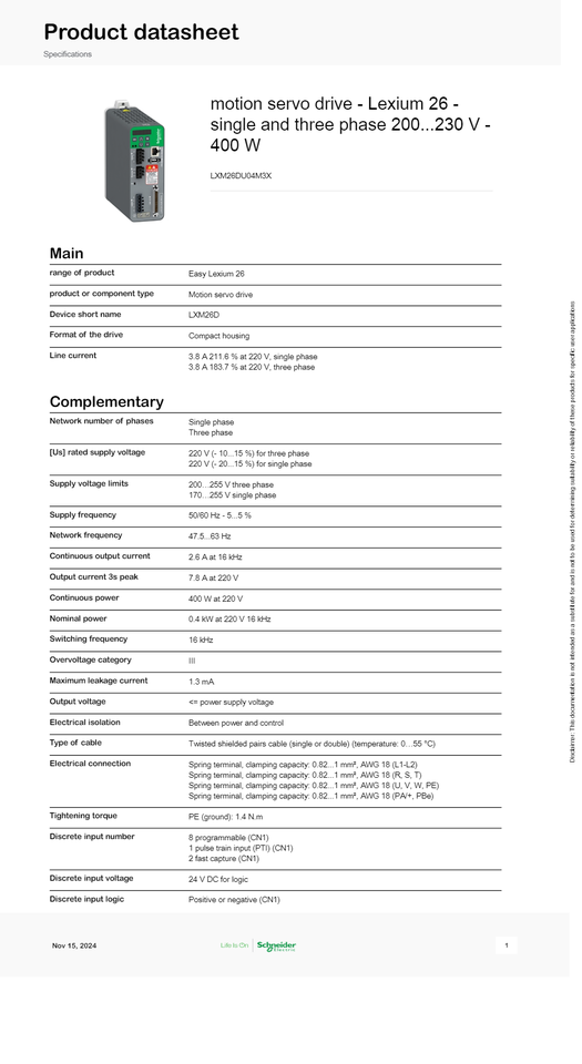 Servomoteur d'origine LXM26DU04M3X Lexium Easy 26