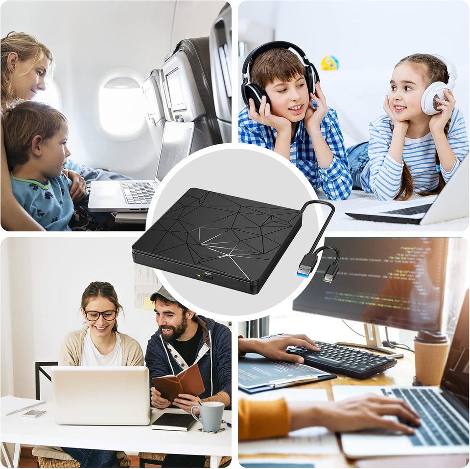 Lecteur de CD DVD externe mince original USB C 3.0 graveur de DVD ROM +/-RW graveur de disque optique Ripper pour ordinateur portable de bureau