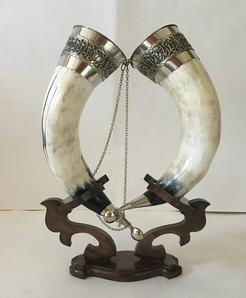 Mug en corne viking original avec support, vaisselle en corne, mug en corne avec support, véritable mug à bière en corne viking artisanal, forme et taille personnalisées