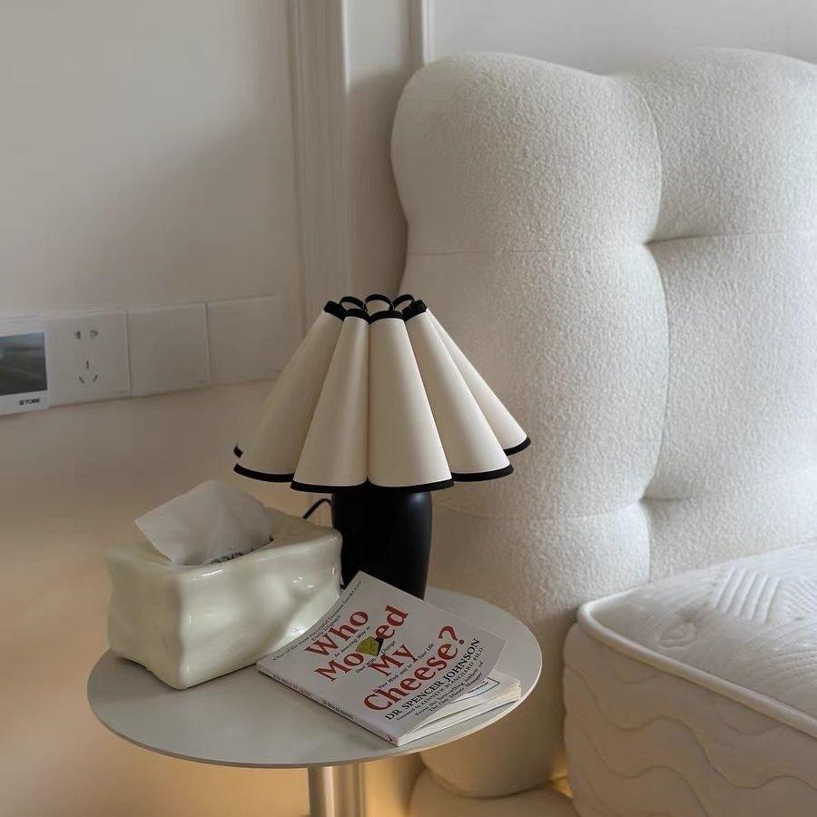 Lampe de chevet en bois d'origine, petite, rétro, à abat-jour plissé en forme de pétale, nouveau style chinois, romantique, décoration de table de chevet, art en bois