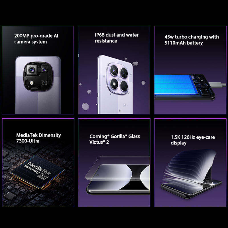 Original pour Téléphone Redmi Note 14 Pro 5G avec Dimensity 7300-Ultra/Batterie 5500 mAh Chargeur 45 W/Écran 6,67 Pouces 1.5K