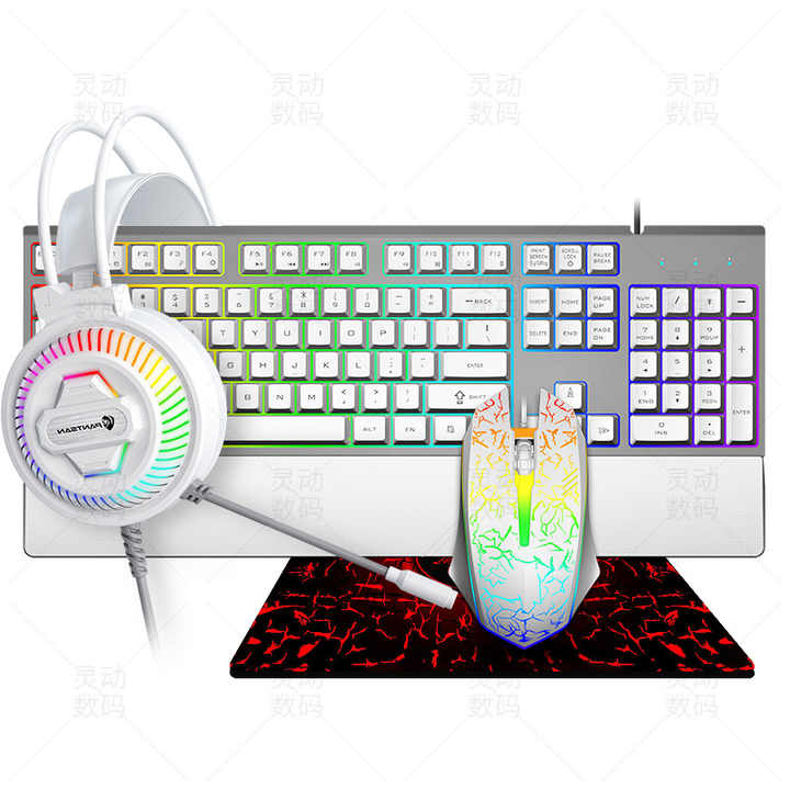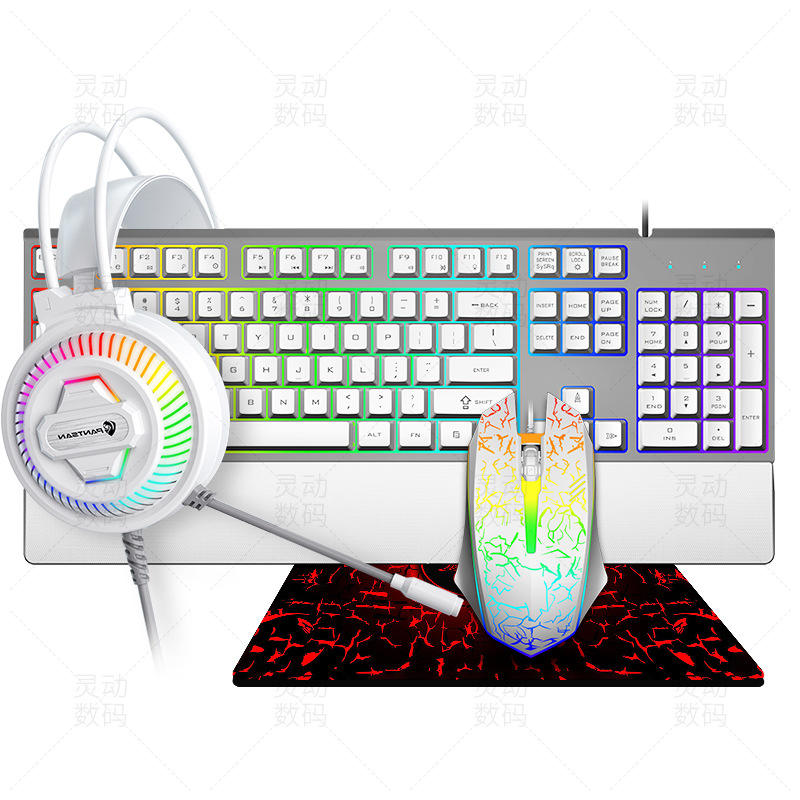 Clavier et souris de jeu filaires LED 4-en-1 avec casque et tapis pour joueurs - En stock