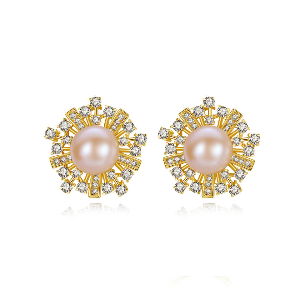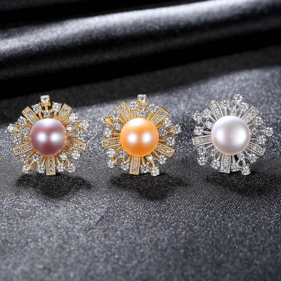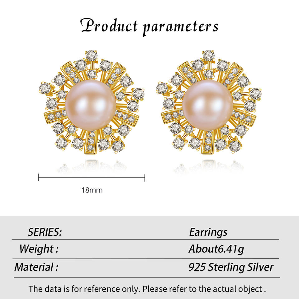 Original wholesale S925 silver inlaid zircon flower earrings freshwater pearl earrings fashionable women's jewelry