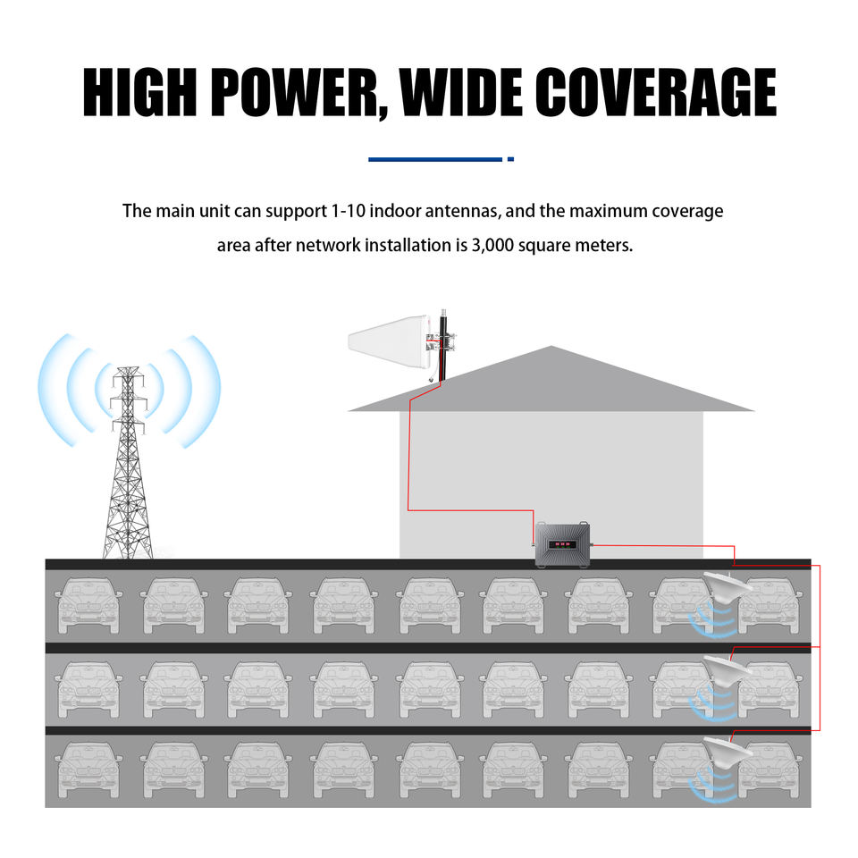 Amplificateur de signal mobile à bande de fréquence personnalisable, répéteur de signal 2G/3G/4G/LTE, couverture de plus de 1000 m²