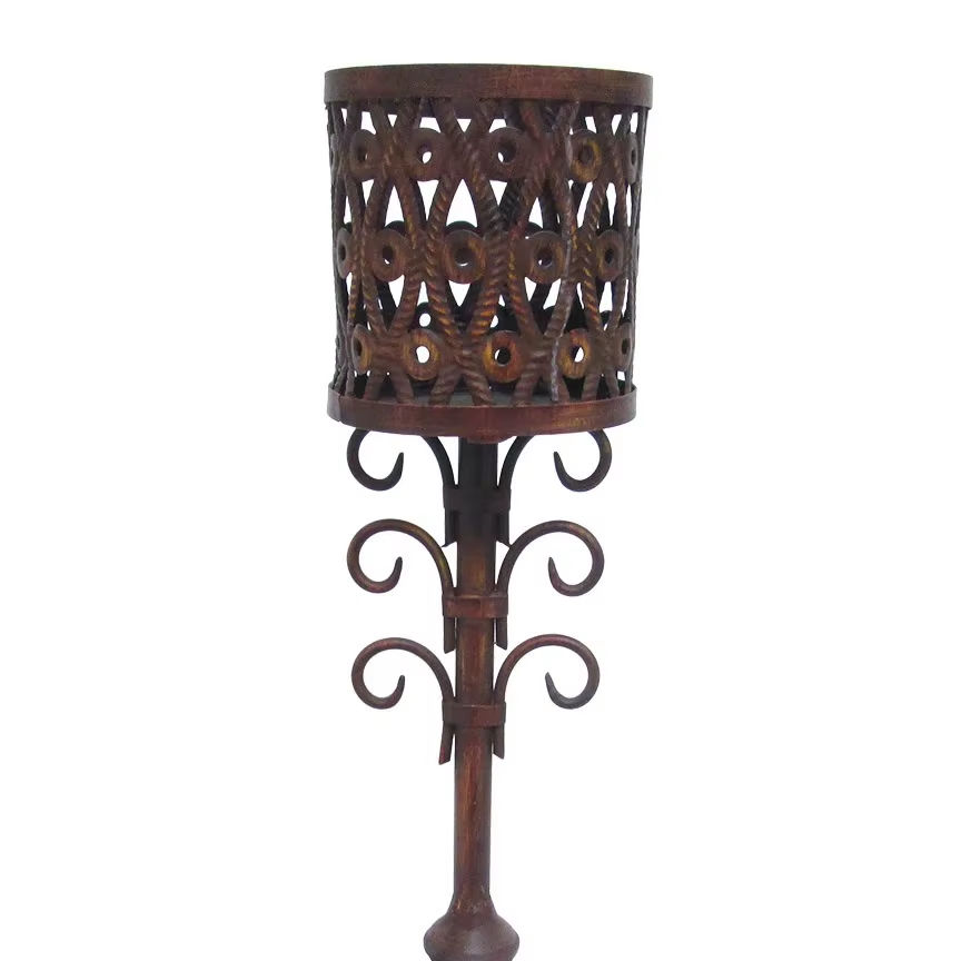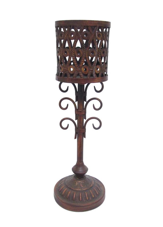Bougeoir d'ouragan en métal rustique orné Bougeoir de table en fer forgé de style vintage