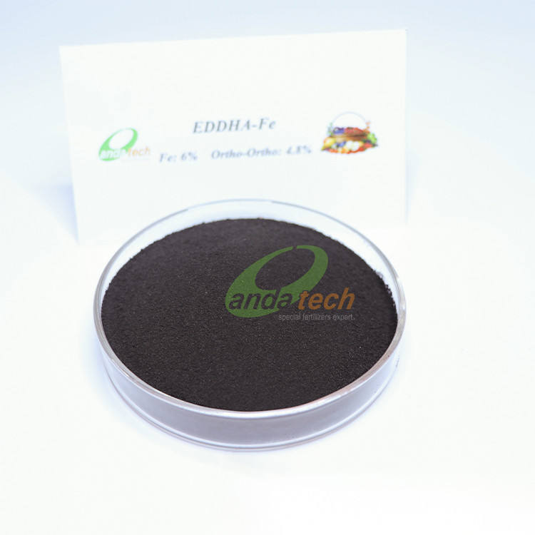Ortho EDDHA Fe 6% Chélate de Fer à Isomère Oo Élevé, Poudre Noire de Qualité Engrais pour la Correction des Sols Alcalins et le Traitement de la Chlorose