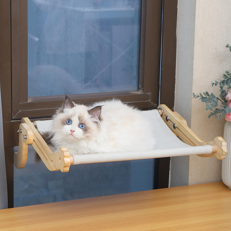 Orthopedic Cat Perch for Window Sill - Premium Hardwood & Metal Frame Cat Hammock for Large Cats & Kittens - Natural Wood