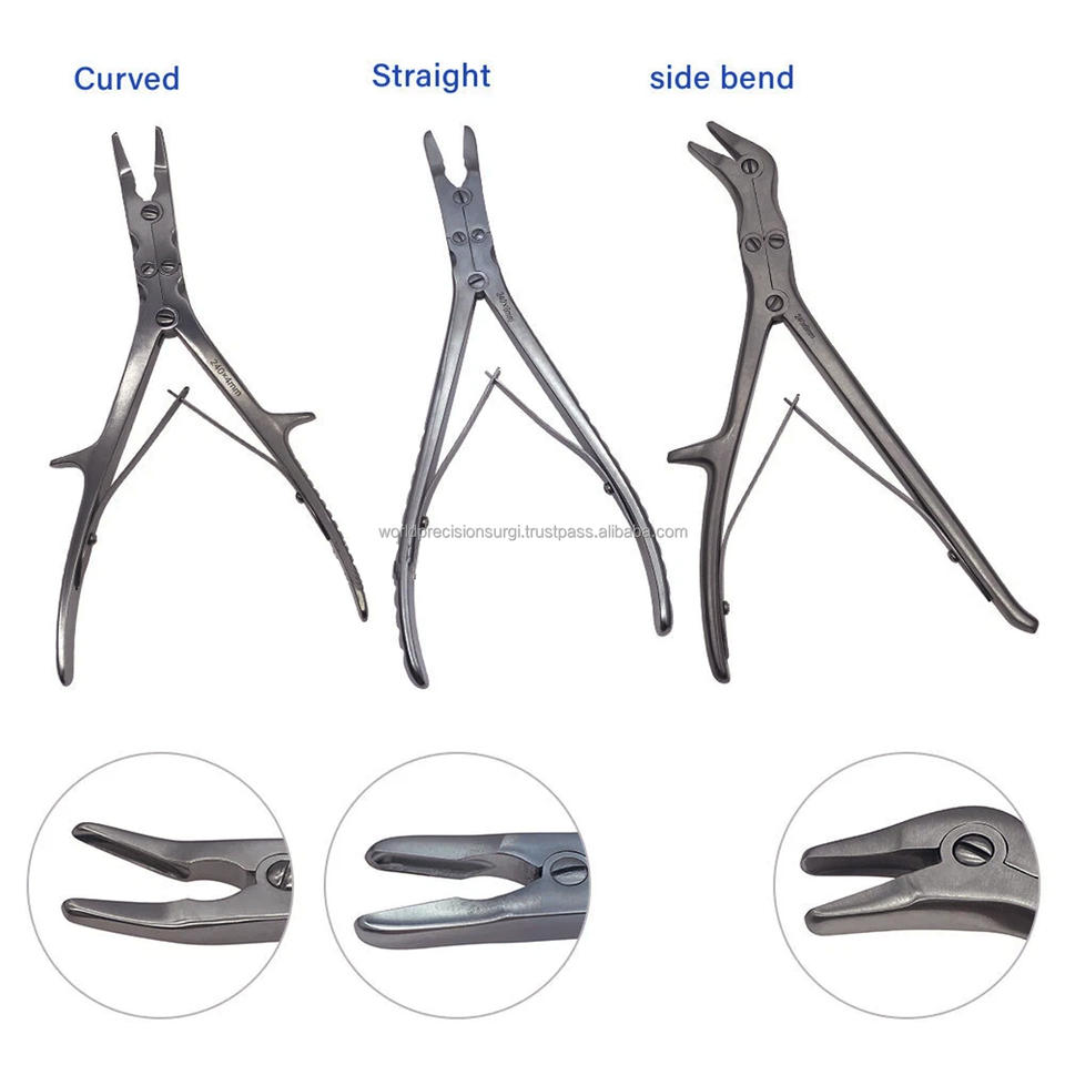 Rongeur orthopédique à double action, droit et courbé, en acier inoxydable chirurgical, instrument chirurgical de précision mondiale WPS-DA-12