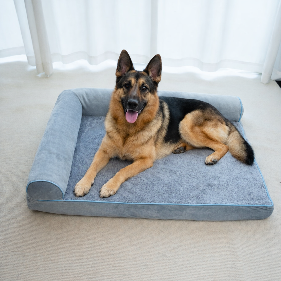 Lit pour chien orthopédique en mousse à mémoire de forme, lavable, imperméable, canapé de luxe pour animaux de compagnie avec housse amovible, fausse fourrure douce et fond antidérapant