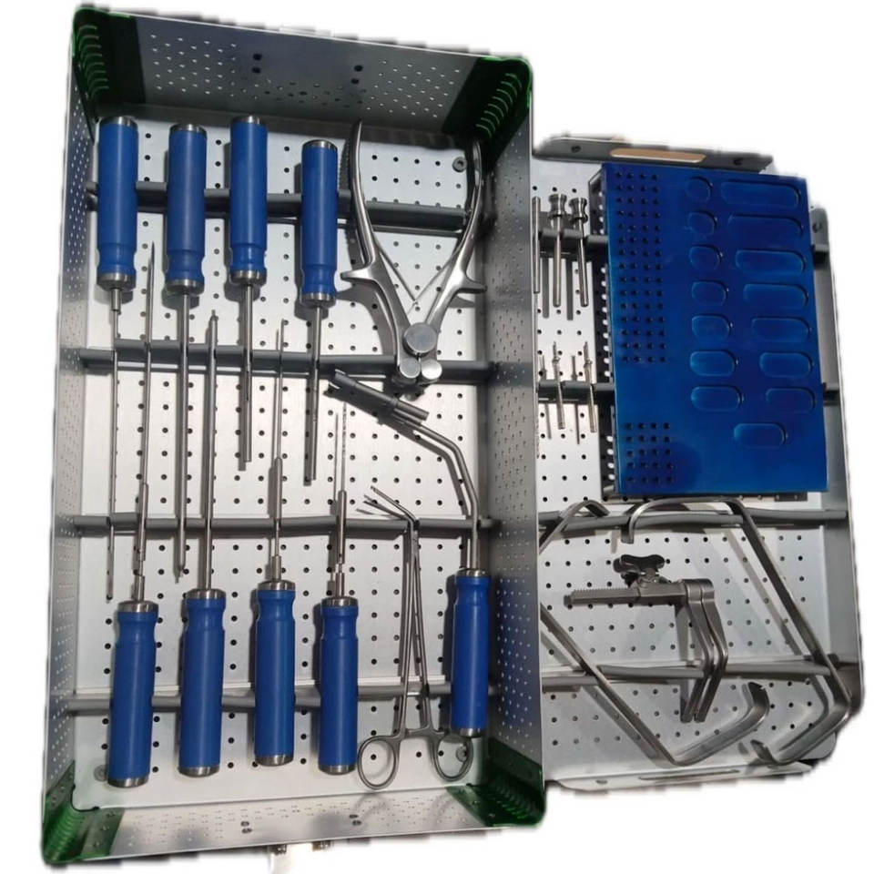 Ensemble d'instruments chirurgicaux orthopédiques pour la colonne vertébrale complet avec écarteur de boîtier d'implants