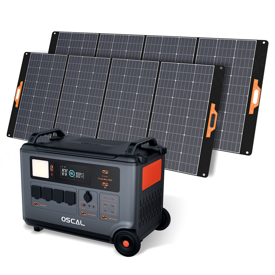 Station d'alimentation portable Oscal Power Max 6000 + panneaux solaires PM400 Pro, contrôle intelligent par application, livraison gratuite de la station d'alimentation Oscal, 57600 kWh