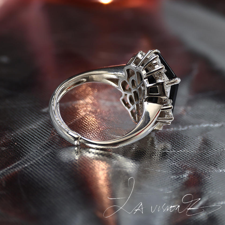 Bague d'anniversaire pour femme en cristal noir vintage de la série Otherworld avec strass et pierres précieuses