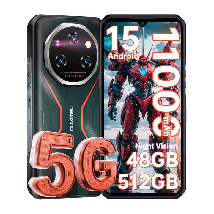 Téléphone Intelligent Durci Oukitel WP55 Pro 5G, RAM 16Go ROM 512Go, Écran FHD+ 6.6" 120Hz, Caméra 32MP+108MP+8MP, Batterie 11000mAh