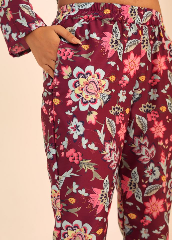 Nom du produit:Ensemble coordonné décontracté à imprimé floral : haut et pantalon