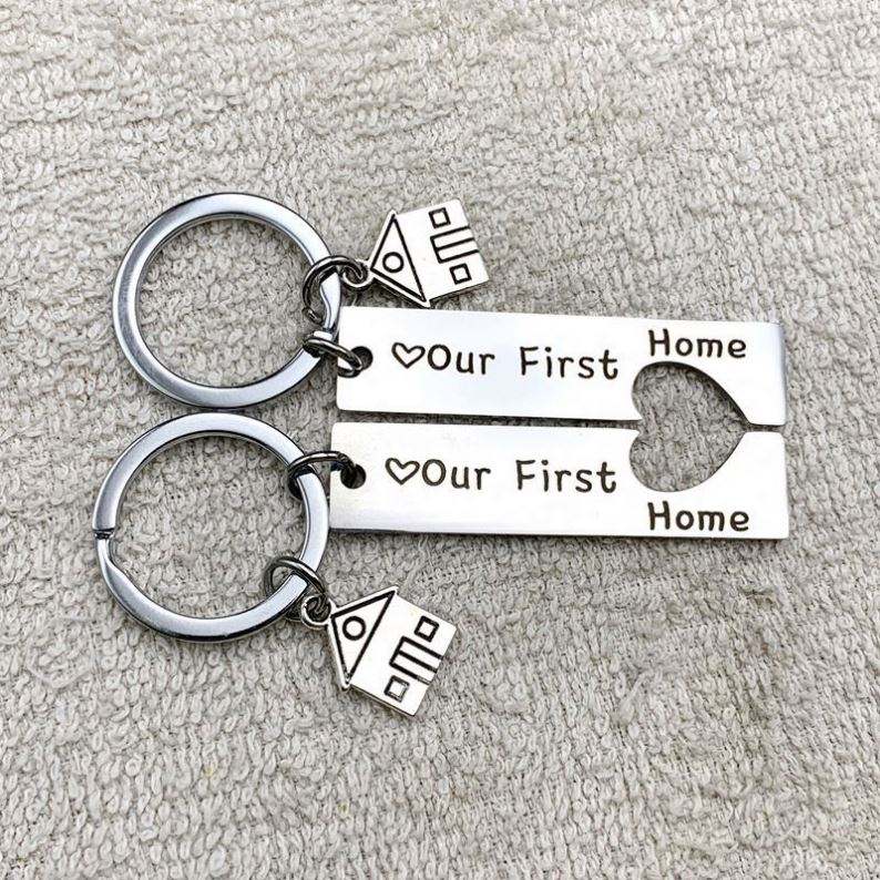 Our First Home Porte-clés en métal Cadeau de pendaison de crémaillère pour femmes hommes Nouveau propriétaire Première nouvelle maison Porte-clés immobilier Déménagement en cadeau