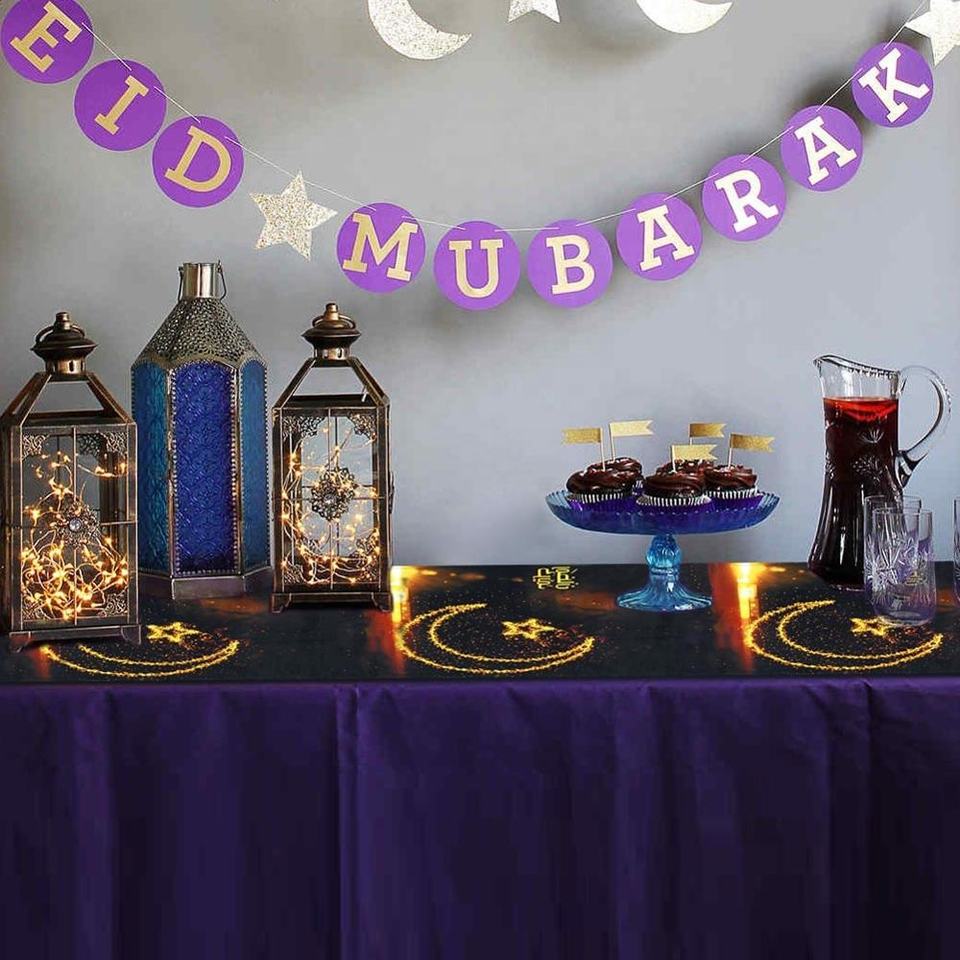 OurWarm 12x70 pouces brillant lune étoiles Eid Mubarak chemin de Table pour Ramadan Mubarak décorations
