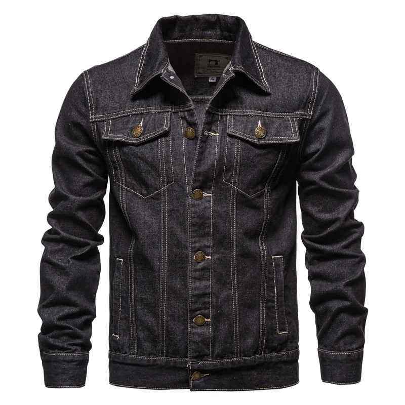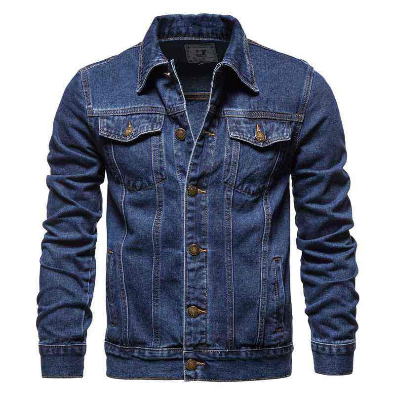 Blouson en jean slim pour homme, en coton, design uni et décontracté, à simple boutonnage, col à revers, style urbain de qualité supérieure