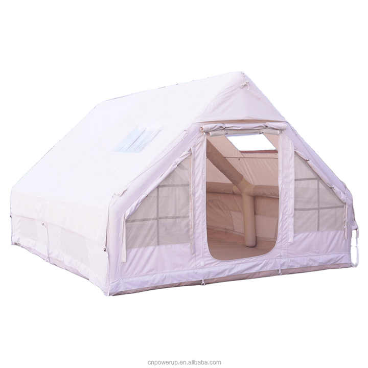 Tente de camping gonflable confortable pour 5 à 8 personnes, grande surface de 12 mètres carrés, avec porte AB et trou pour poêle.