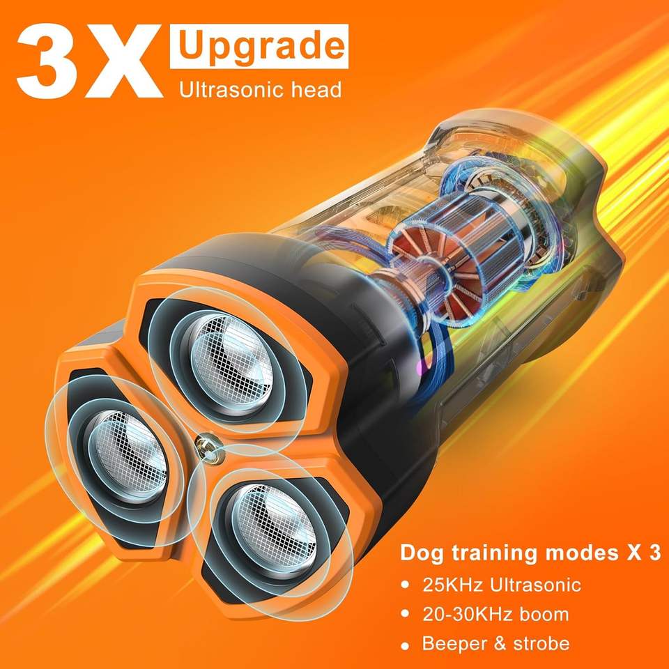 Dispositif anti-aboiement pour chien rechargeable en extérieur, étanche, 3 en 1, longue portée, ultrasonique, anti-aboiement, répulsif pour chien, lampe torche LED