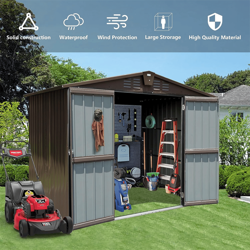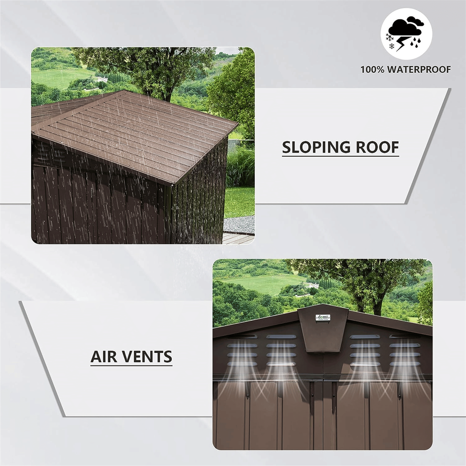 Outdoor 8.2' X 6.2' Metal Steel Utility Tool Shed Double Lockable Doors Air Vents Backyard Patio Garden Lawn Brown Storage House